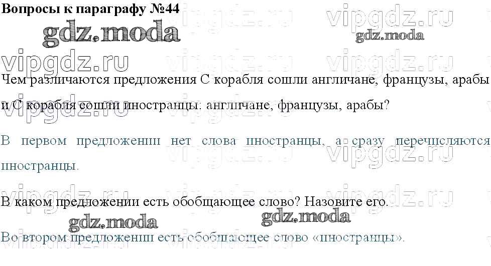 ГДЗ решение к заданию № §44 Русский язык 8 класс Тростенцова Л.А. Просвещение 2014 ФГОС бесплатно на гдз.мода!