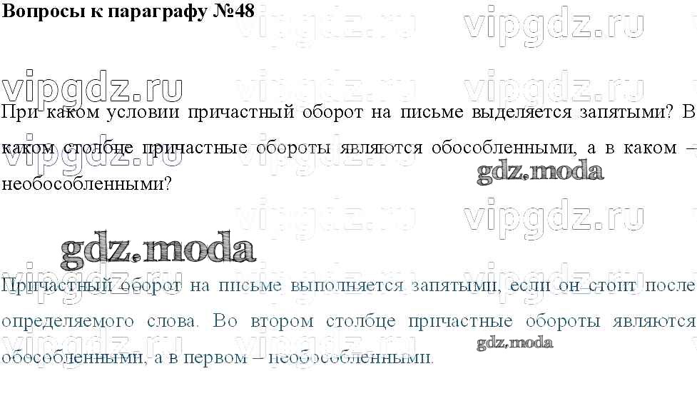 ГДЗ решение к заданию № §48 Русский язык 8 класс Тростенцова Л.А. Просвещение 2014 ФГОС бесплатно на гдз.мода!