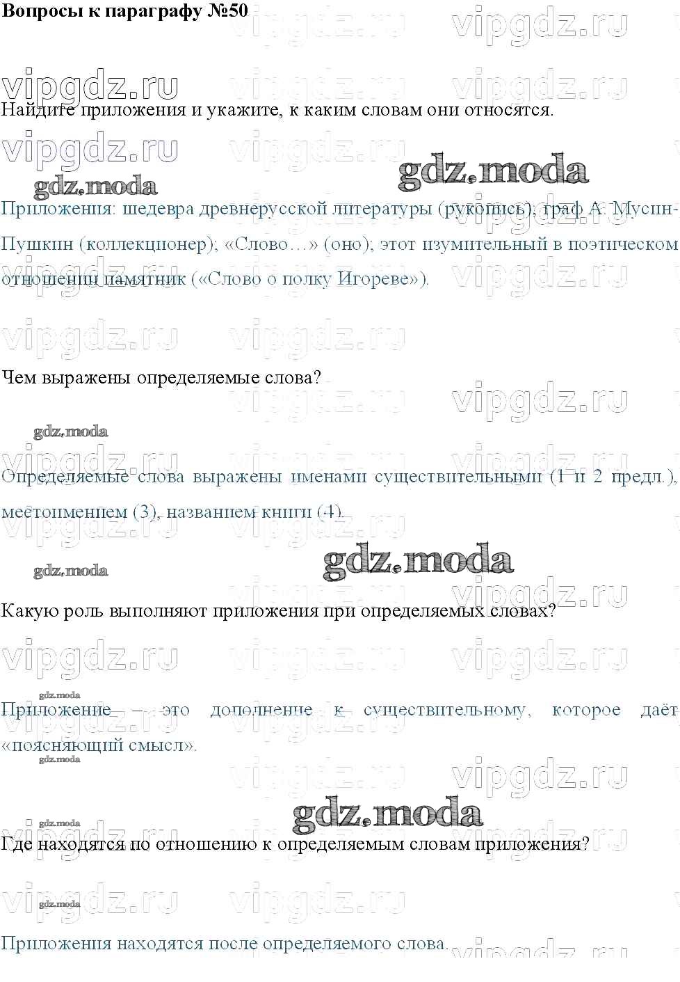 ГДЗ решение к заданию № §50 Русский язык 8 класс Тростенцова Л.А. Просвещение 2014 ФГОС бесплатно на гдз.мода!