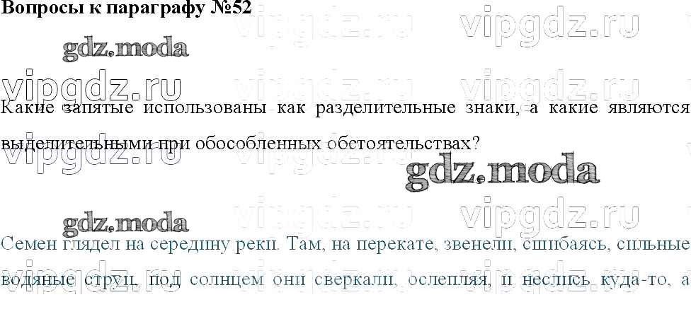 ГДЗ решение к заданию № §52 Русский язык 8 класс Тростенцова Л.А. Просвещение 2014 ФГОС бесплатно на гдз.мода!