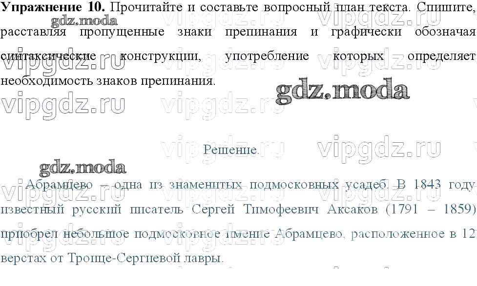 ОТВЕТ на задание № 10 Учебник по Русскому языку 8 класс Тростенцова