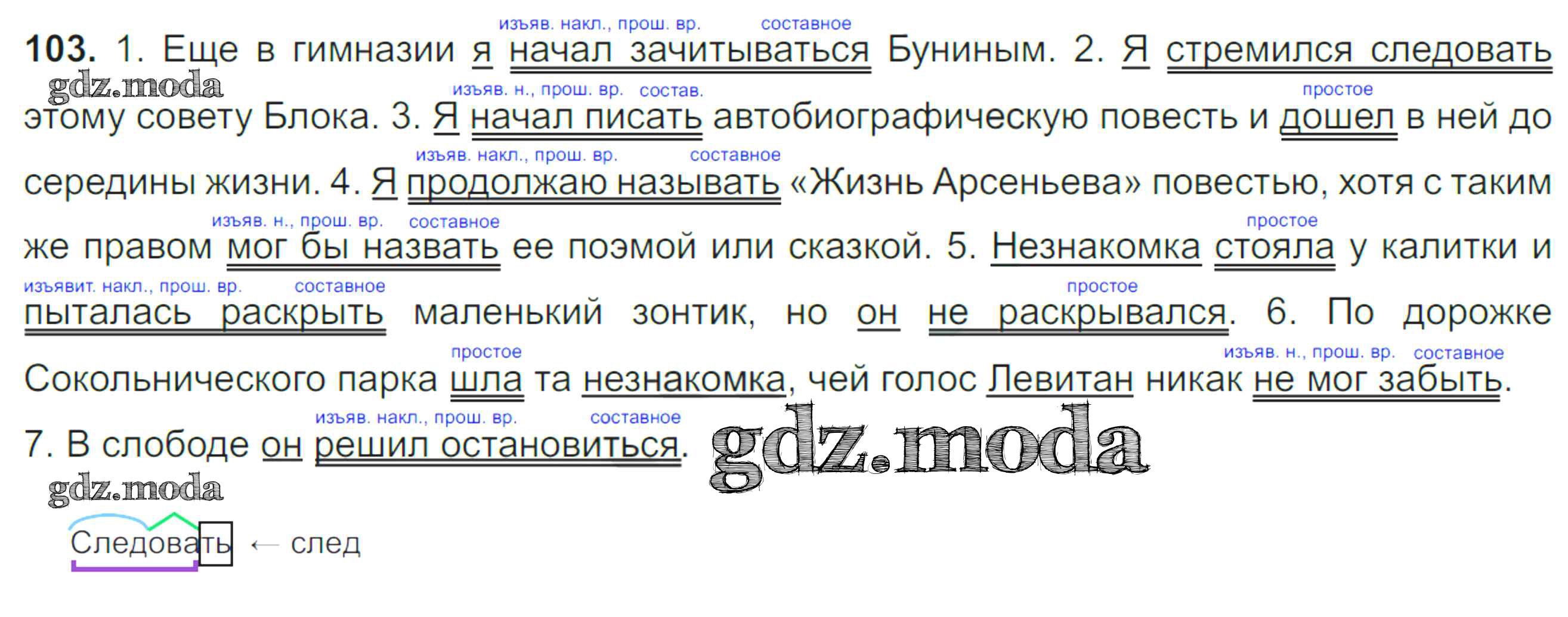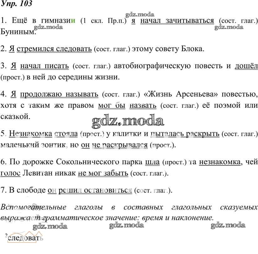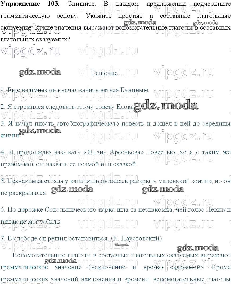 ОТВЕТ на задание № 103 Учебник по Русскому языку 8 класс Тростенцова