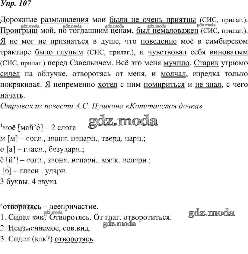 ОТВЕТ на задание № 107 Учебник по Русскому языку 8 класс Тростенцова