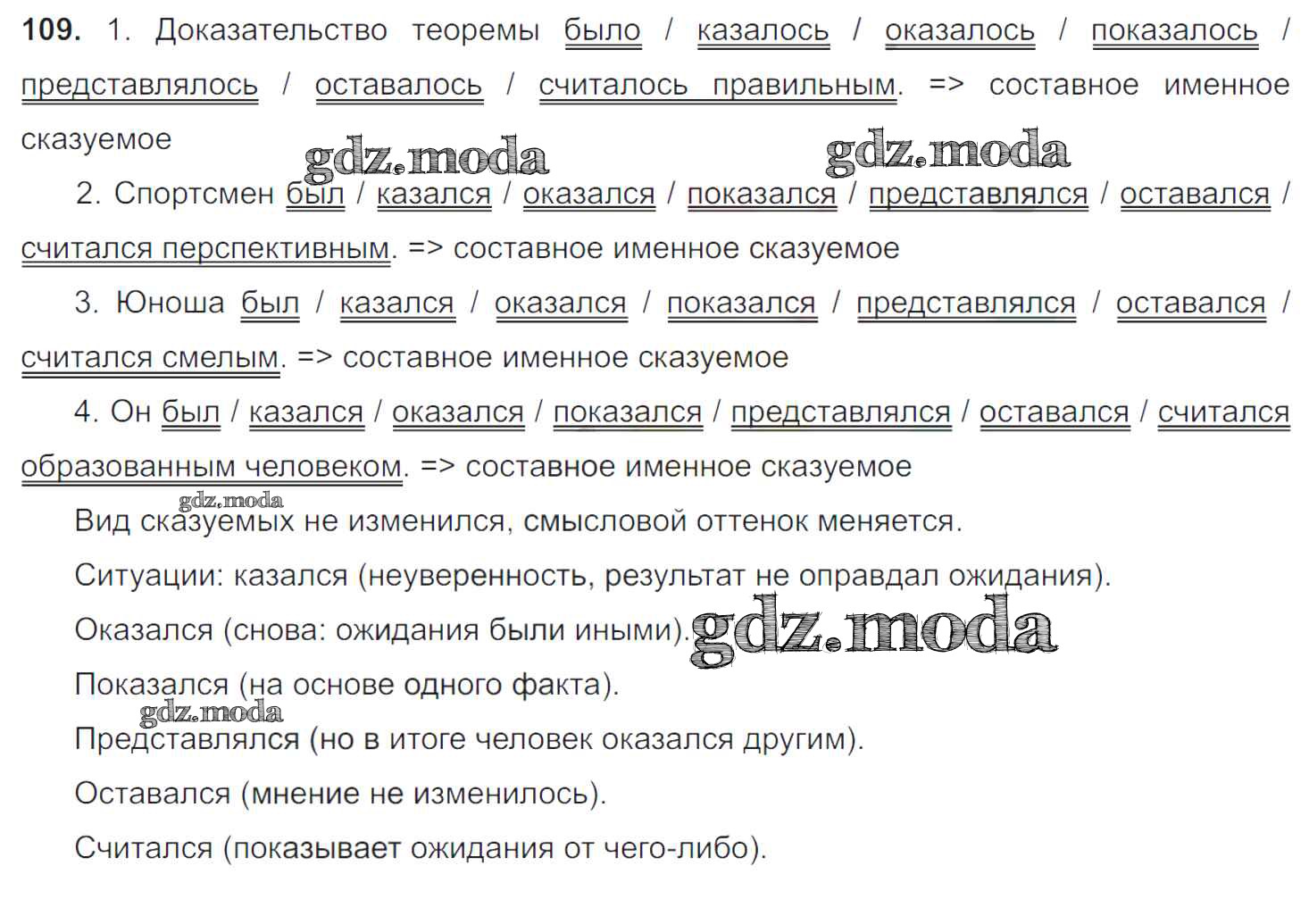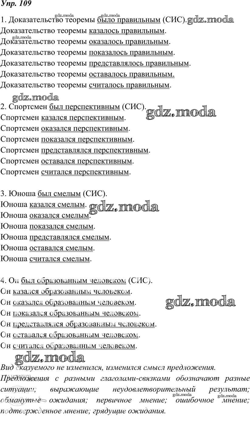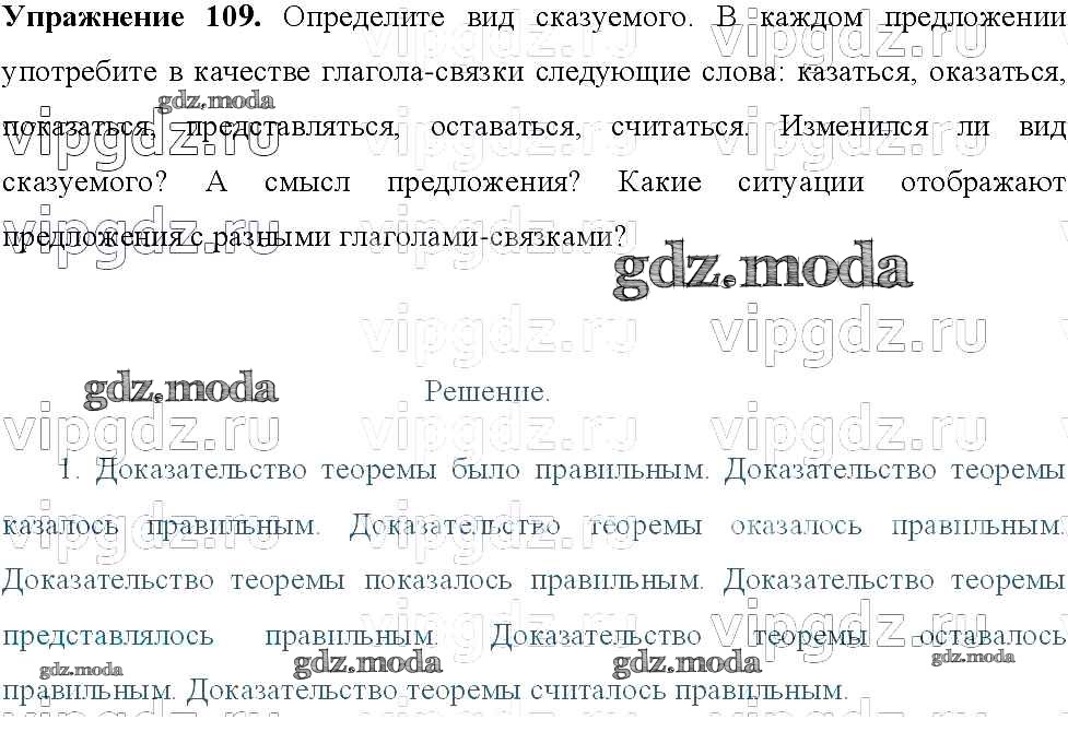 ОТВЕТ на задание № 109 Учебник по Русскому языку 8 класс Тростенцова