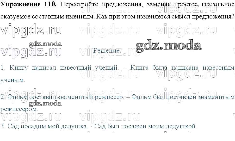 ОТВЕТ на задание № 110 Учебник по Русскому языку 8 класс Тростенцова
