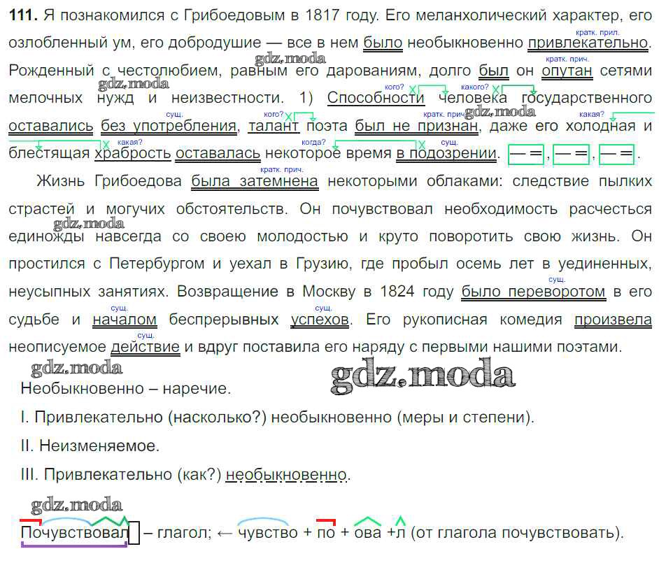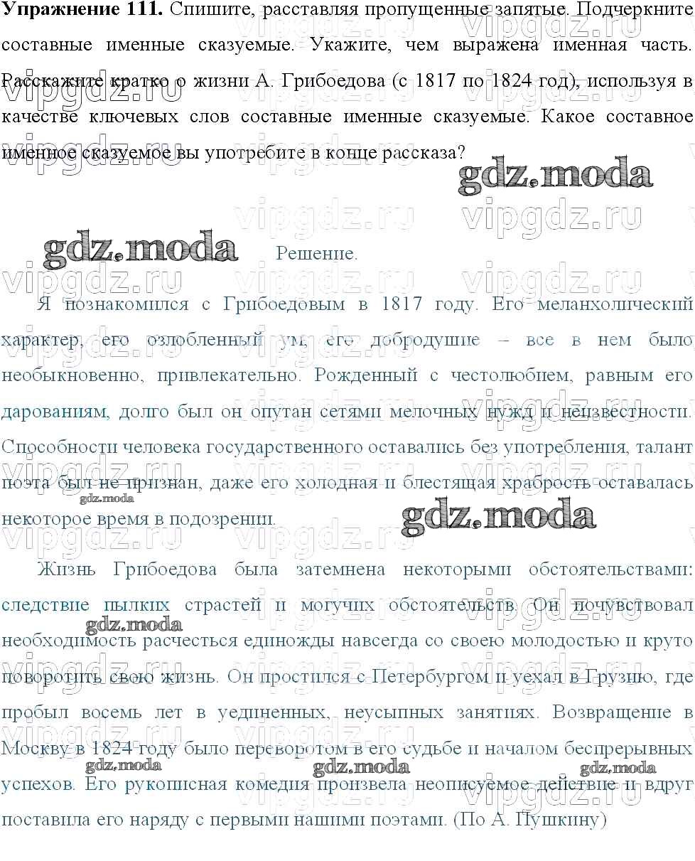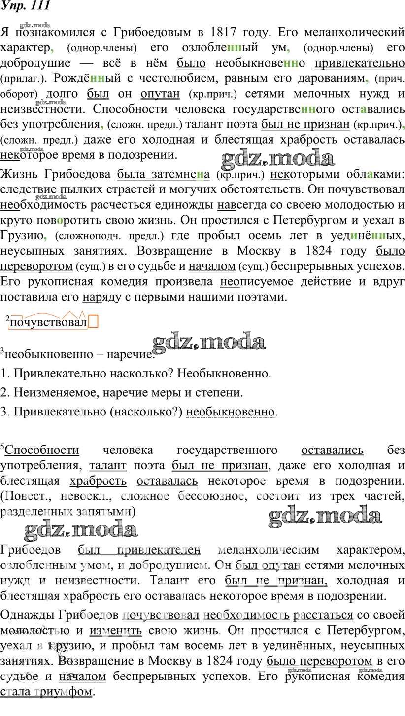ОТВЕТ на задание № 111 Учебник по Русскому языку 8 класс Тростенцова
