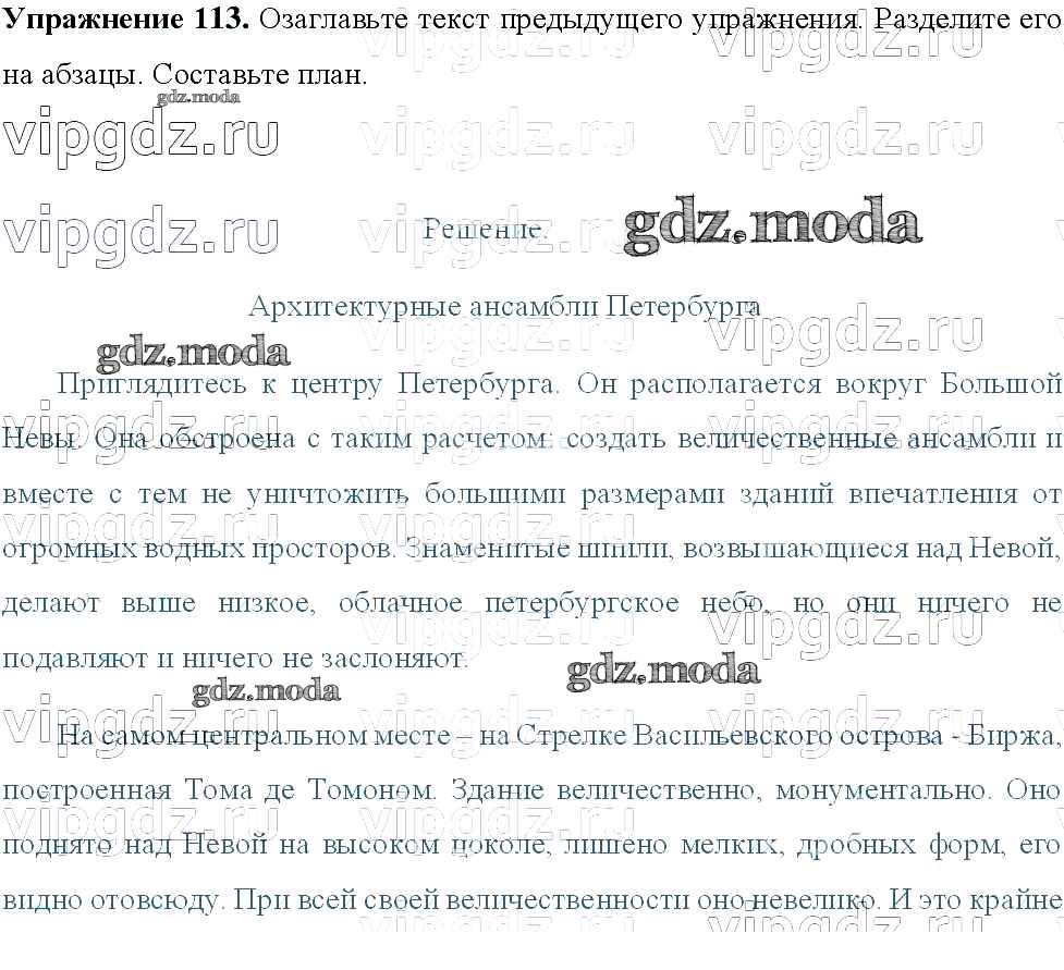 ОТВЕТ на задание № 113 Учебник по Русскому языку 8 класс Тростенцова