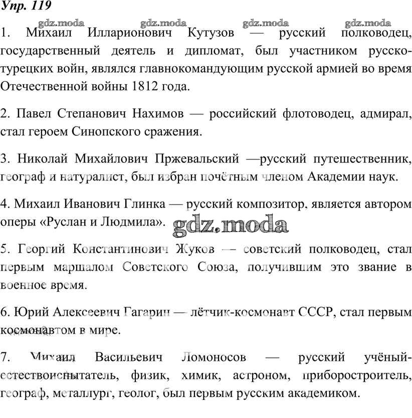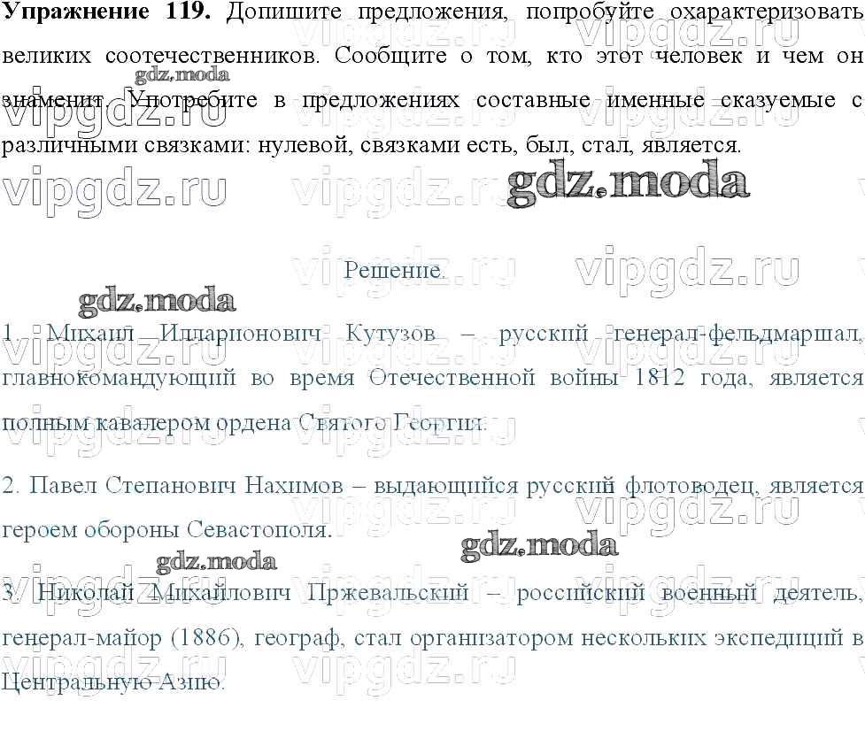 ОТВЕТ на задание № 119 Учебник по Русскому языку 8 класс Тростенцова