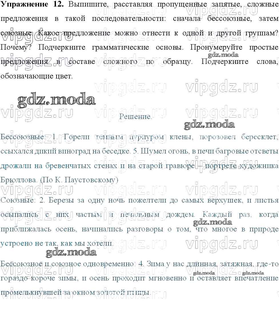ОТВЕТ на задание № 12 Учебник по Русскому языку 8 класс Тростенцова