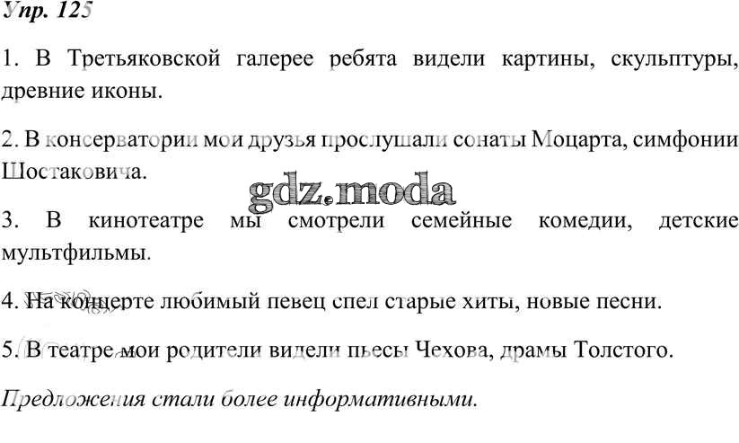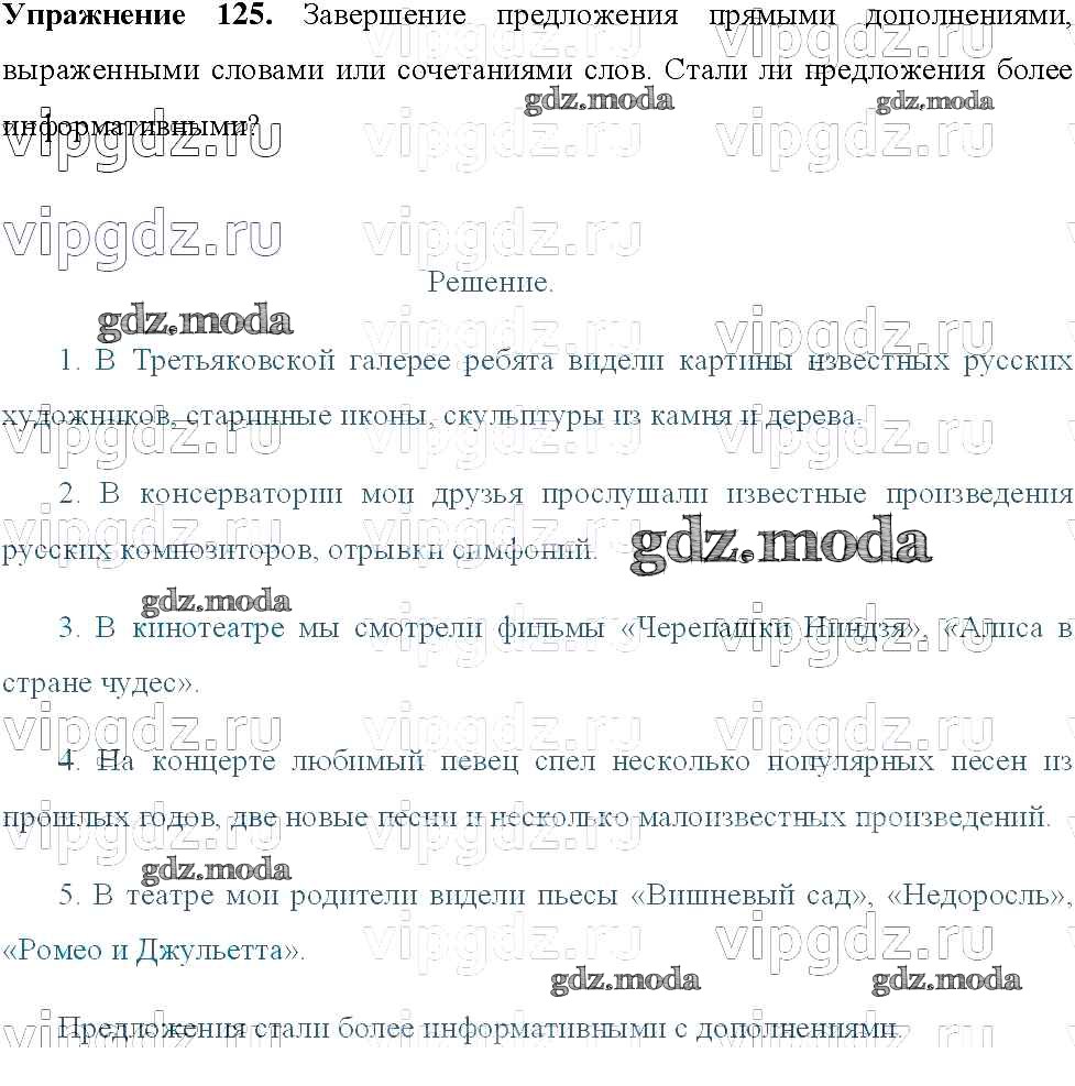 ОТВЕТ на задание № 125 Учебник по Русскому языку 8 класс Тростенцова