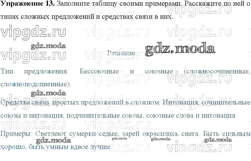 ОТВЕТ на задание № 13 Учебник по Русскому языку 8 класс Тростенцова