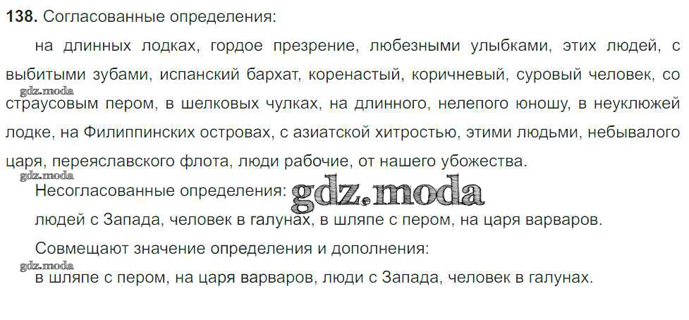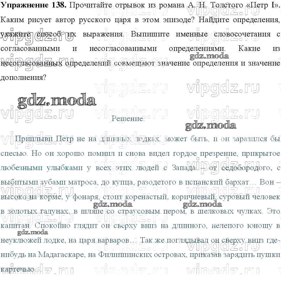 ОТВЕТ на задание № 138 Учебник по Русскому языку 8 класс Тростенцова