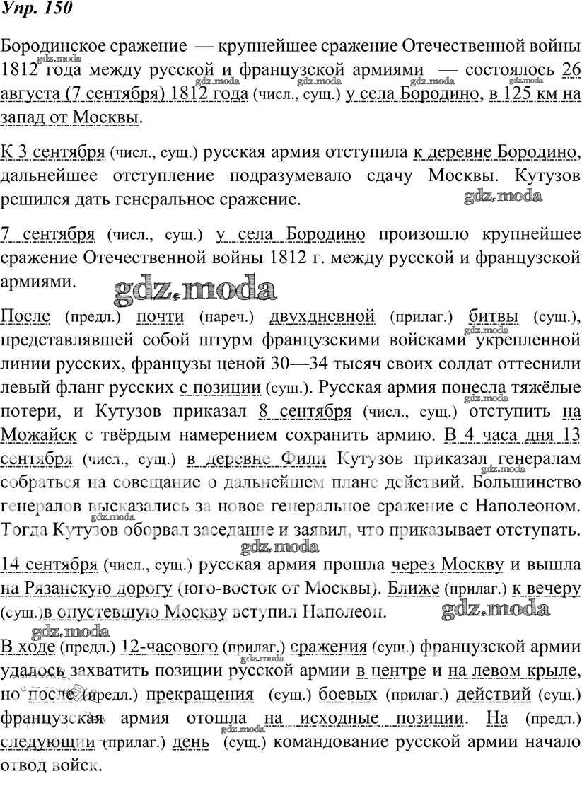 ОТВЕТ на задание № 150 Учебник по Русскому языку 8 класс Тростенцова