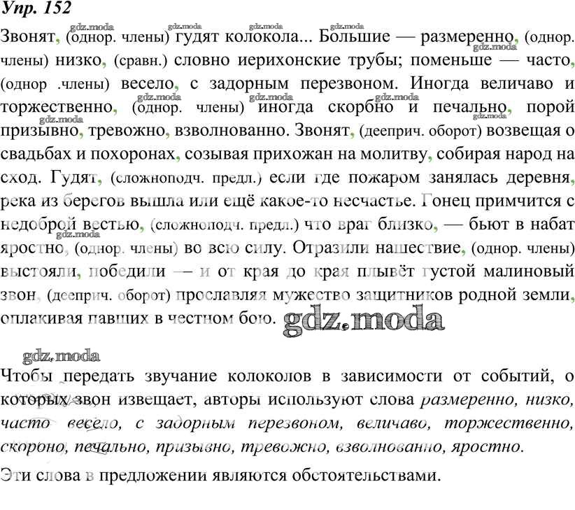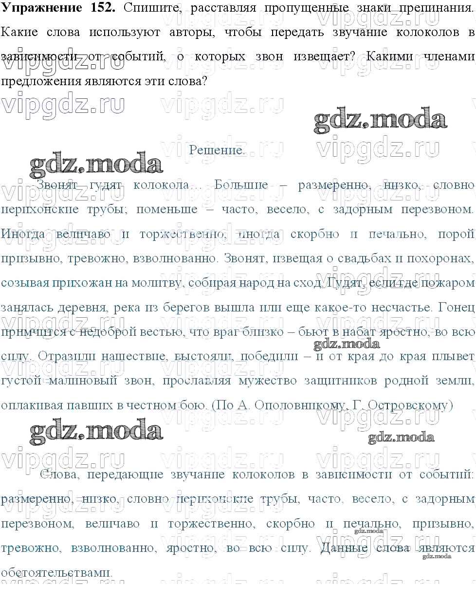 ОТВЕТ на задание № 152 Учебник по Русскому языку 8 класс Тростенцова
