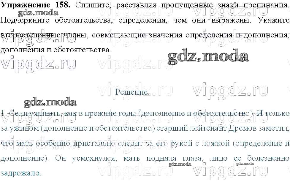 ОТВЕТ на задание № 158 Учебник по Русскому языку 8 класс Тростенцова