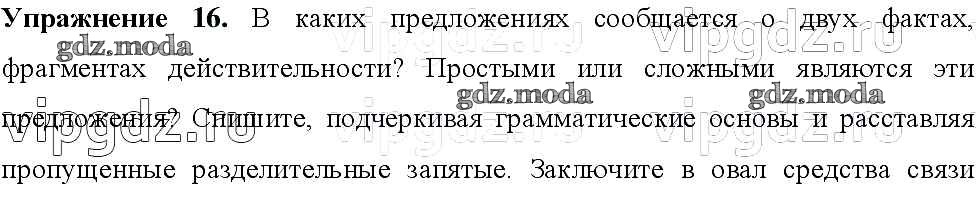 ОТВЕТ на задание № 16 Учебник по Русскому языку 8 класс Тростенцова