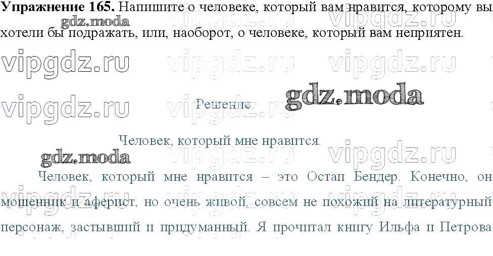 ОТВЕТ на задание № 165 Учебник по Русскому языку 8 класс Тростенцова