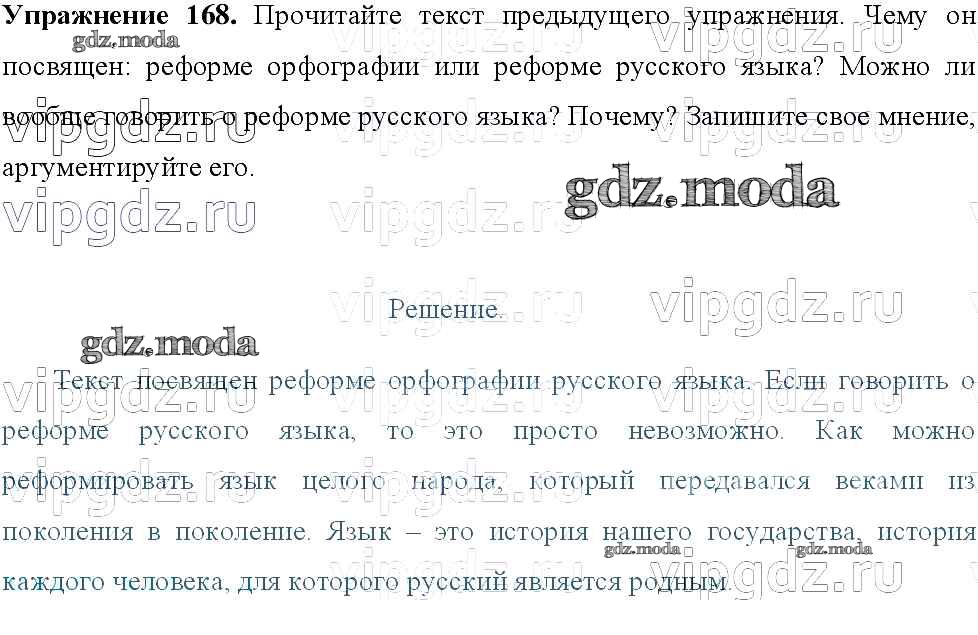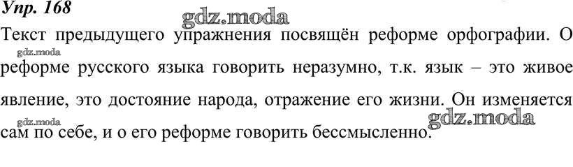 ОТВЕТ на задание № 168 Учебник по Русскому языку 8 класс Тростенцова