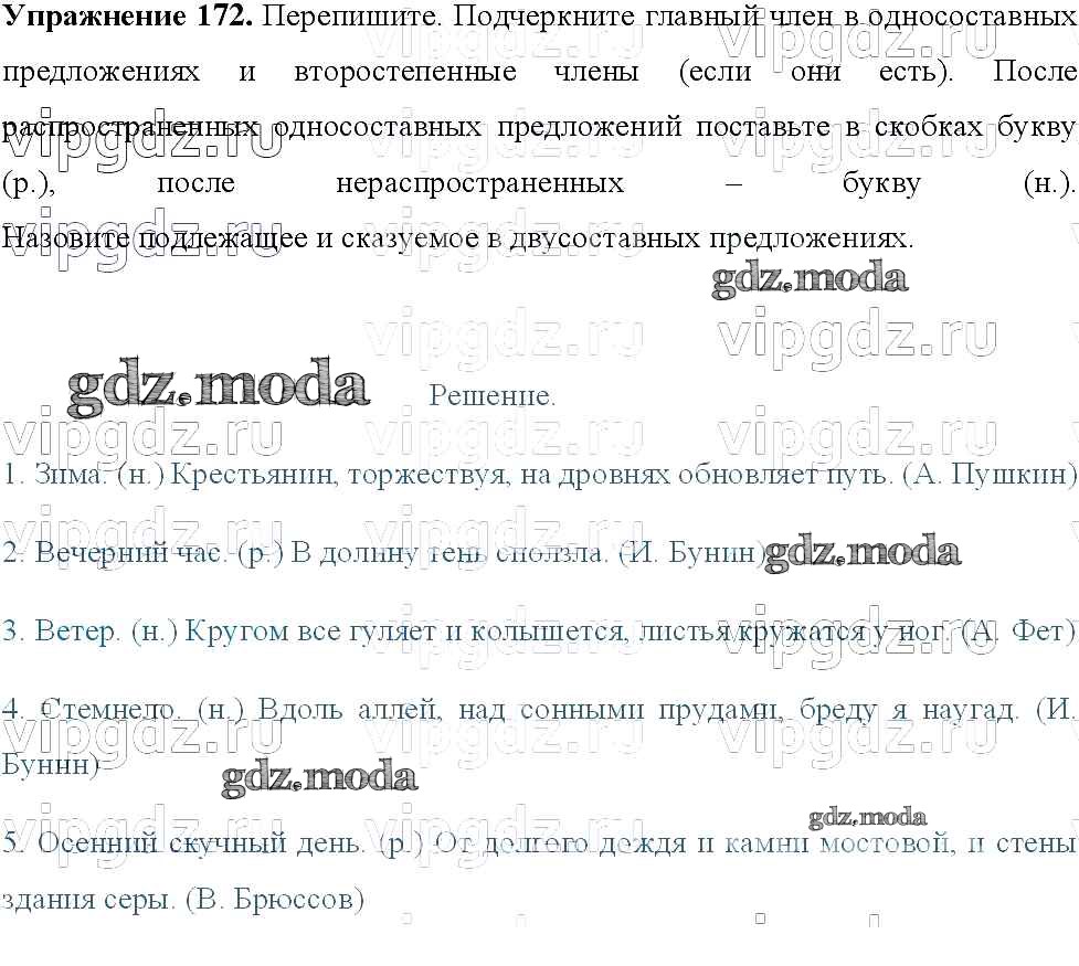 ОТВЕТ на задание № 172 Учебник по Русскому языку 8 класс Тростенцова