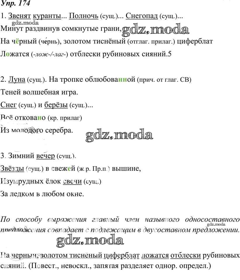 ОТВЕТ на задание № 174 Учебник по Русскому языку 8 класс Тростенцова