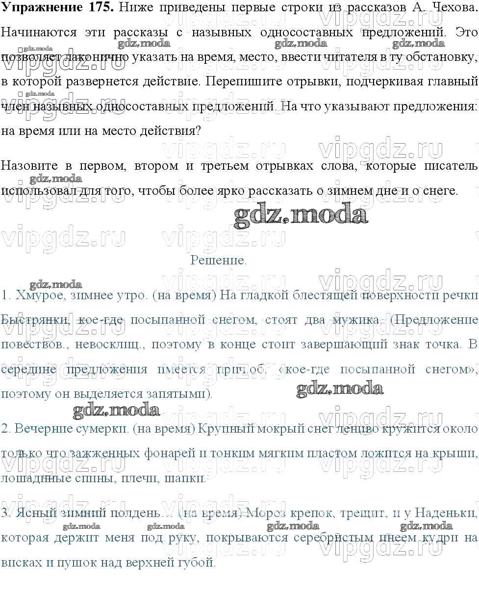 ОТВЕТ на задание № 175 Учебник по Русскому языку 8 класс Тростенцова