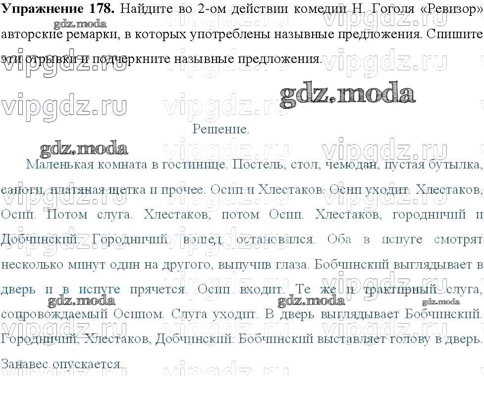 ОТВЕТ на задание № 178 Учебник по Русскому языку 8 класс Тростенцова
