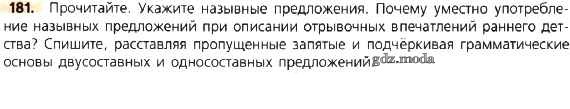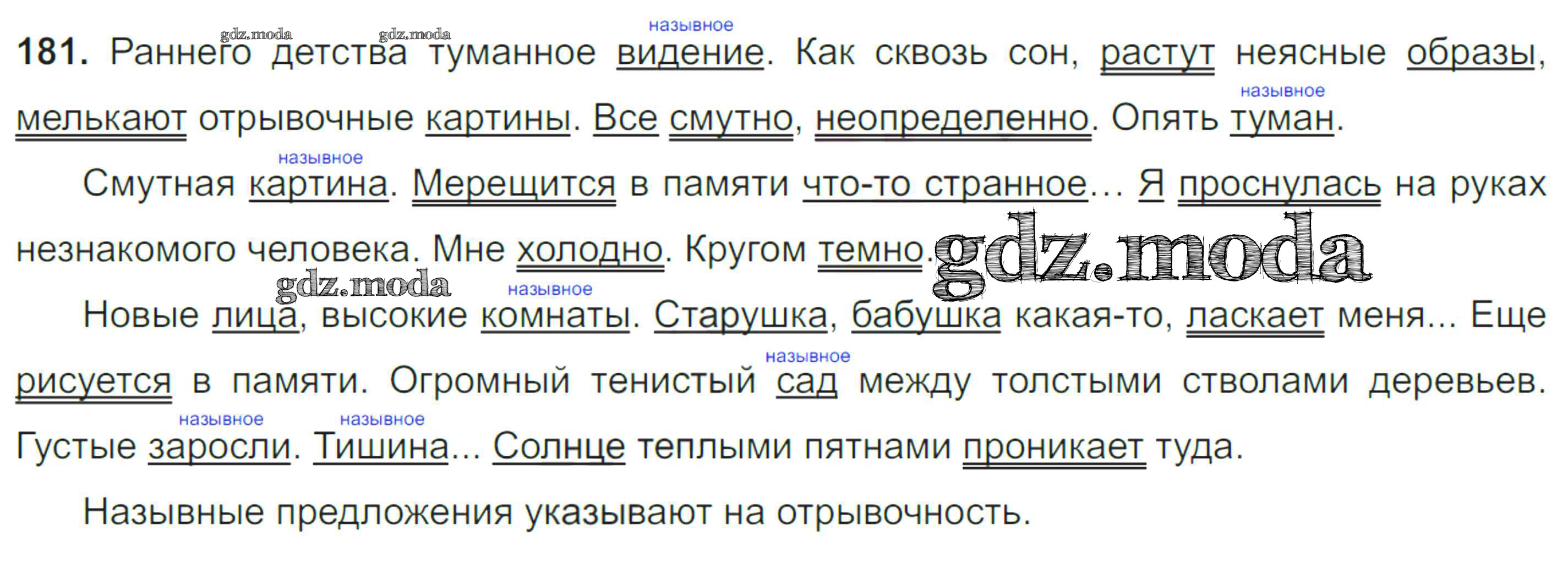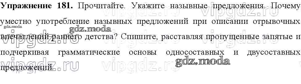 ОТВЕТ на задание № 181 Учебник по Русскому языку 8 класс Тростенцова