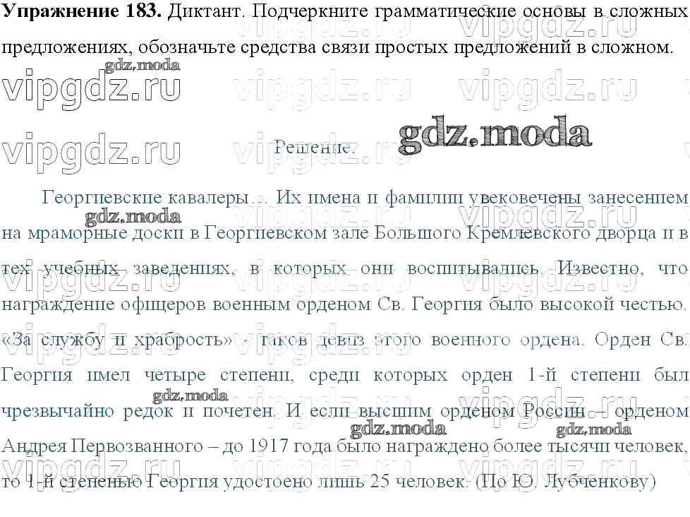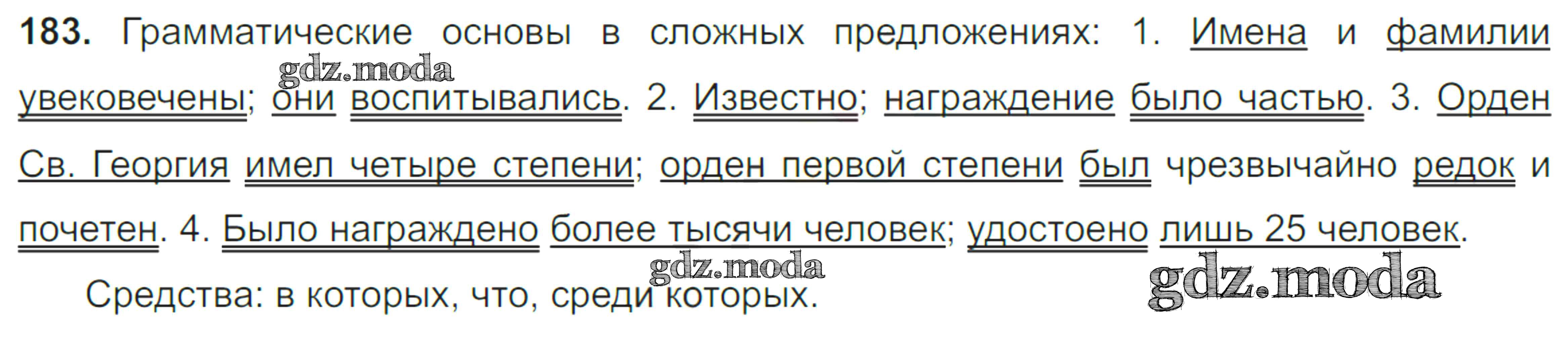 ОТВЕТ на задание № 183 Учебник по Русскому языку 8 класс Тростенцова
