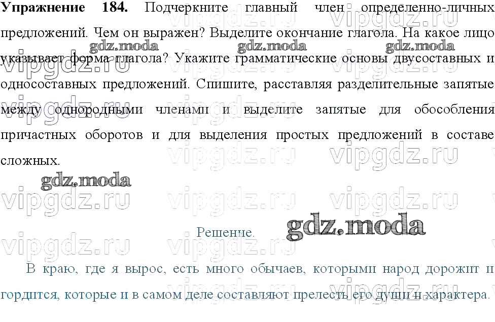 ОТВЕТ на задание № 184 Учебник по Русскому языку 8 класс Тростенцова