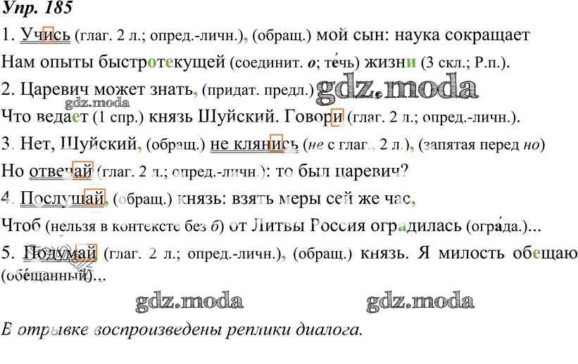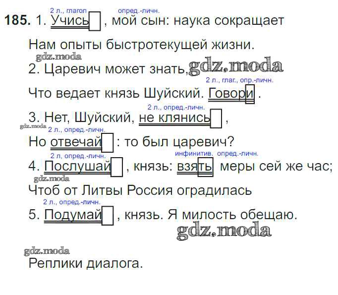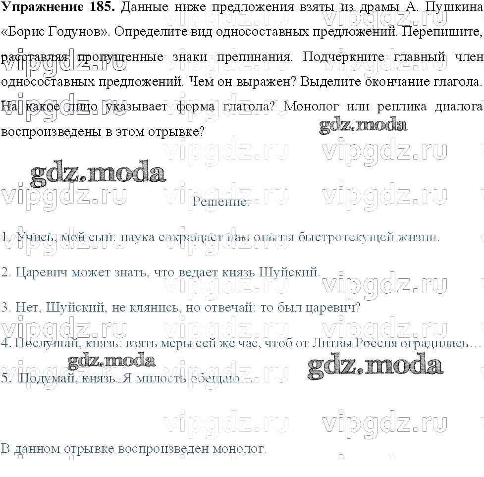 ОТВЕТ на задание № 185 Учебник по Русскому языку 8 класс Тростенцова