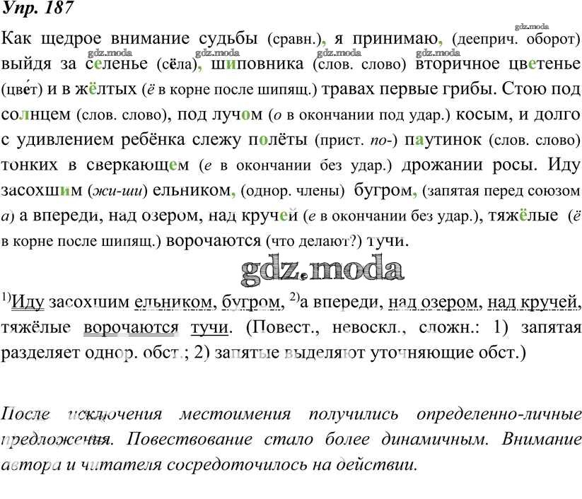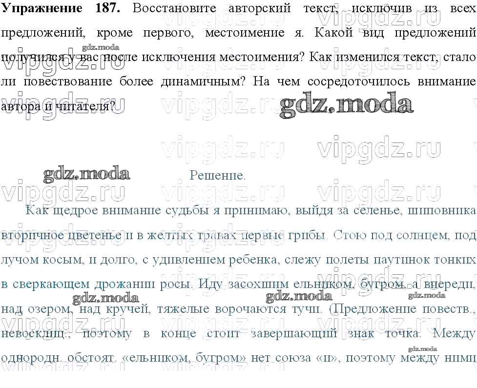 ОТВЕТ на задание № 187 Учебник по Русскому языку 8 класс Тростенцова