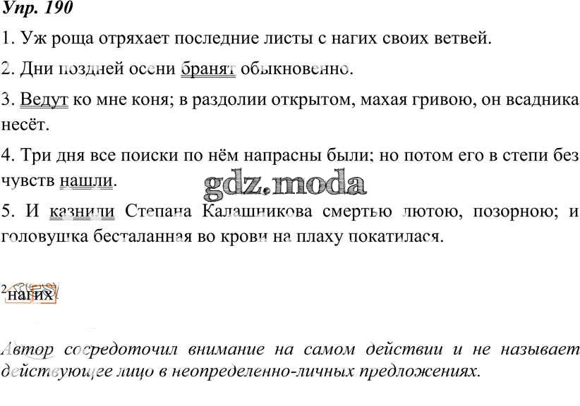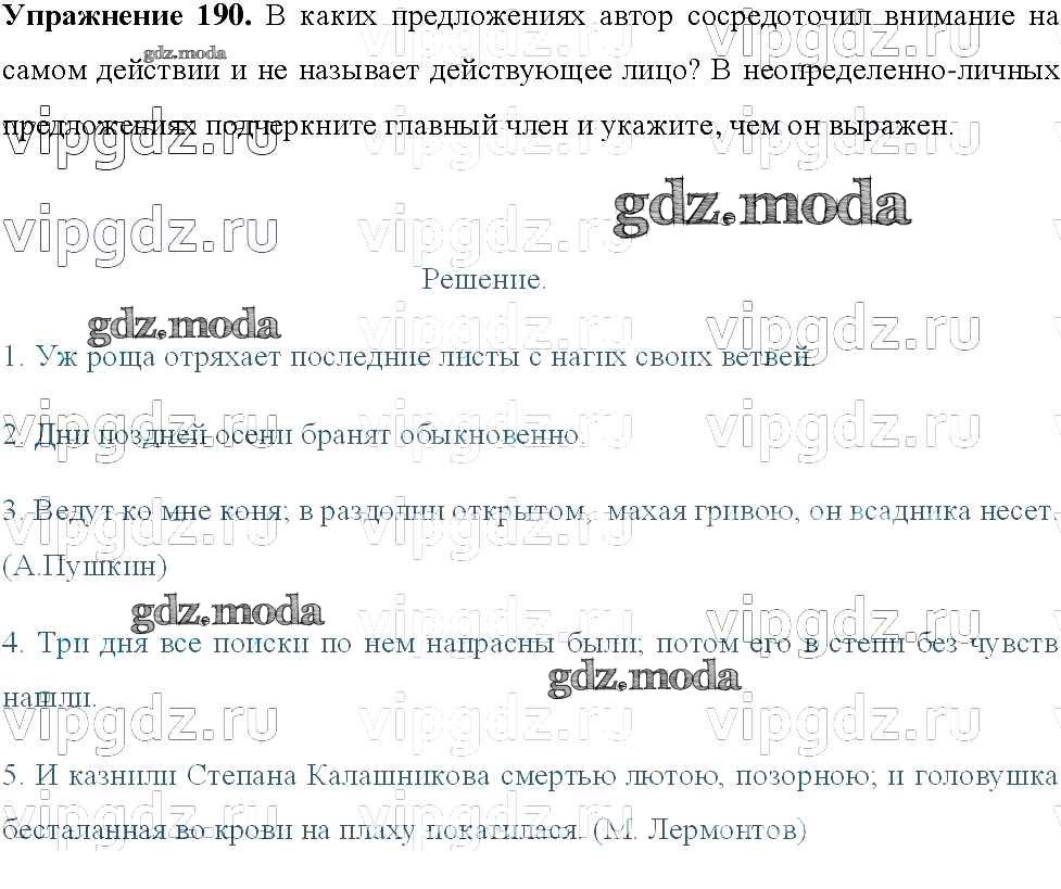 ОТВЕТ на задание № 190 Учебник по Русскому языку 8 класс Тростенцова