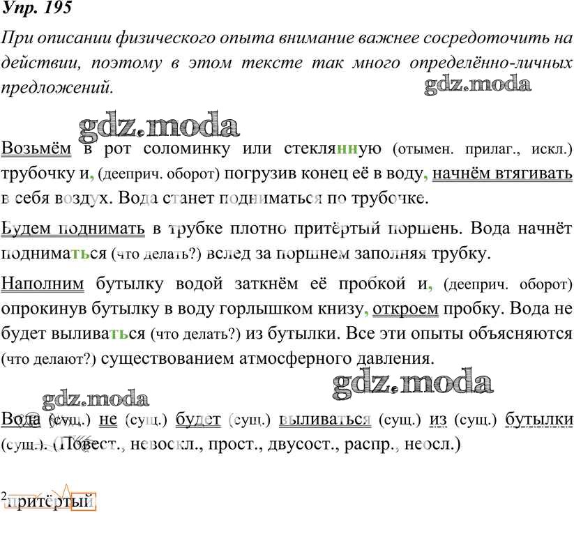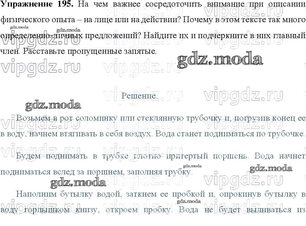 ОТВЕТ на задание № 195 Учебник по Русскому языку 8 класс Тростенцова