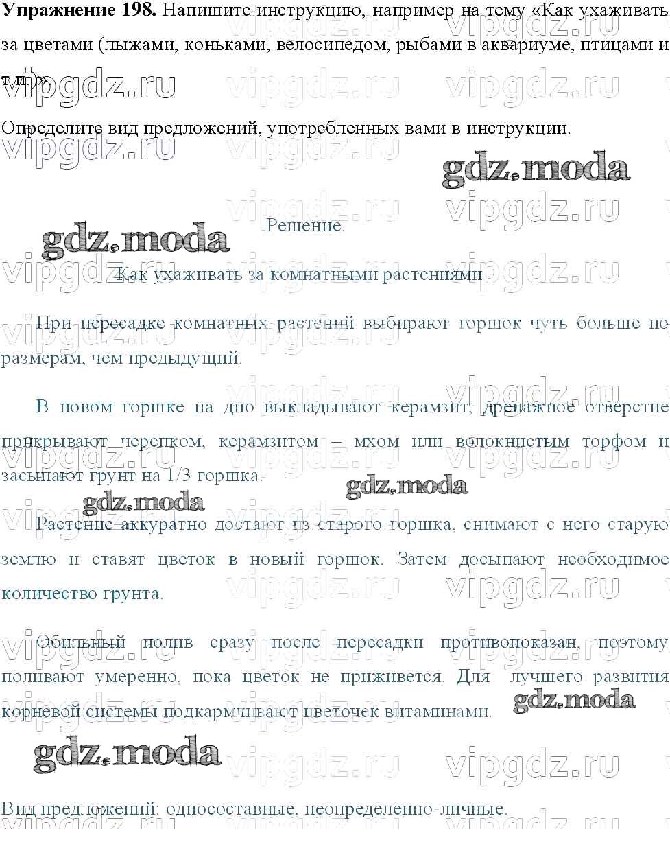 ОТВЕТ на задание № 198 Учебник по Русскому языку 8 класс Тростенцова