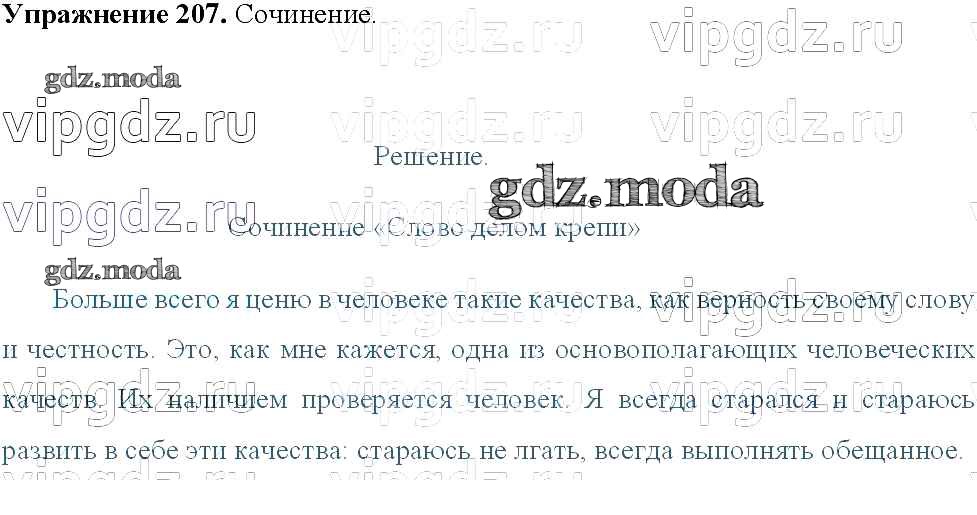 ОТВЕТ на задание № 207 Учебник по Русскому языку 8 класс Тростенцова