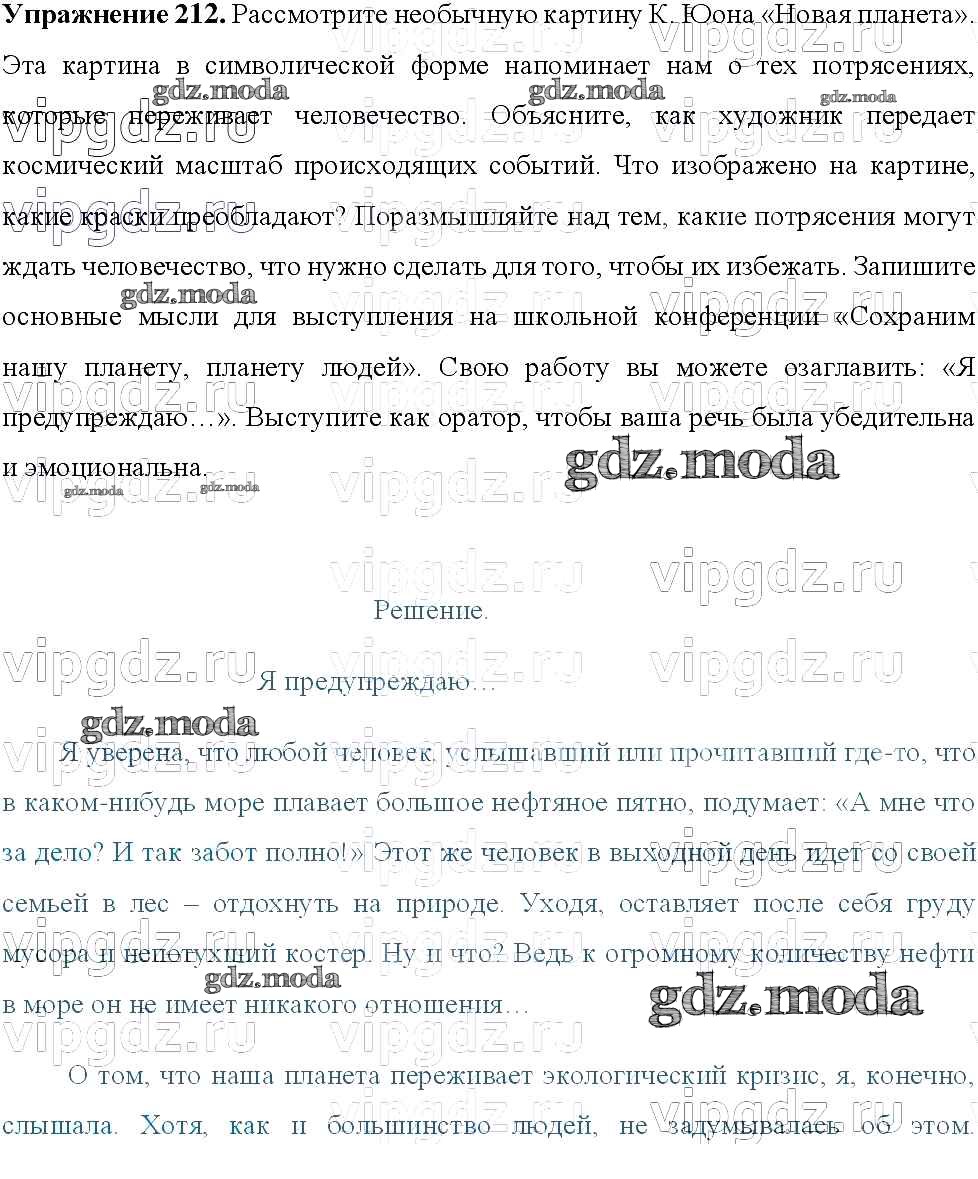 ОТВЕТ на задание № 212 Учебник по Русскому языку 8 класс Тростенцова