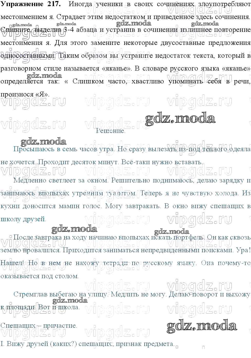 ОТВЕТ на задание № 217 Учебник по Русскому языку 8 класс Тростенцова