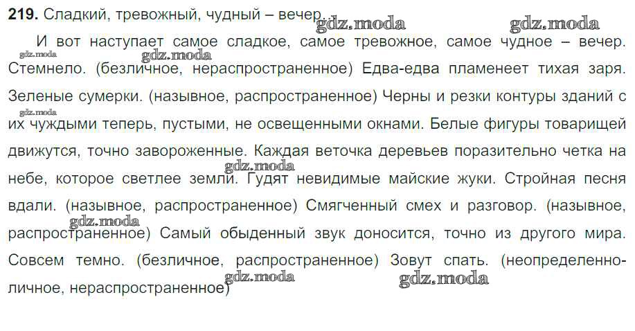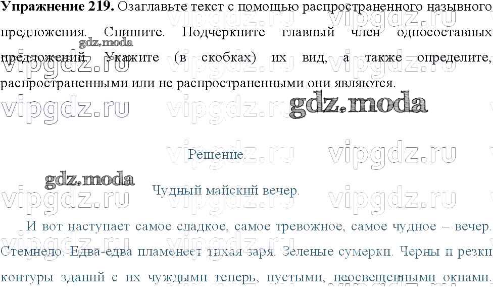 ОТВЕТ на задание № 219 Учебник по Русскому языку 8 класс Тростенцова