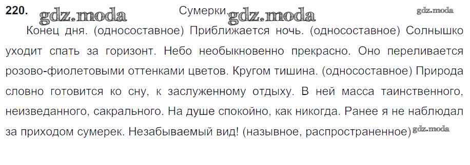 ОТВЕТ на задание № 220 Учебник по Русскому языку 8 класс Тростенцова
