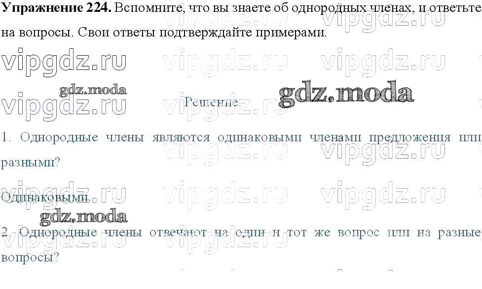 ОТВЕТ на задание № 224 Учебник по Русскому языку 8 класс Тростенцова