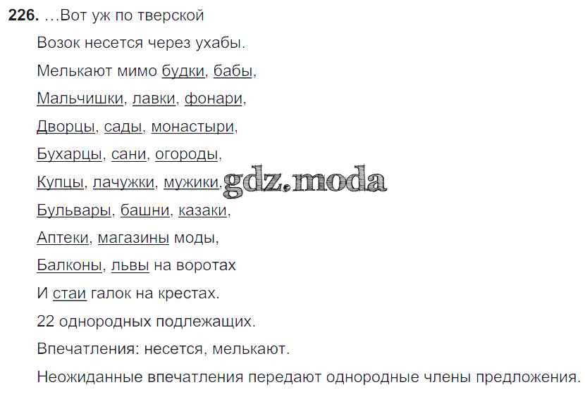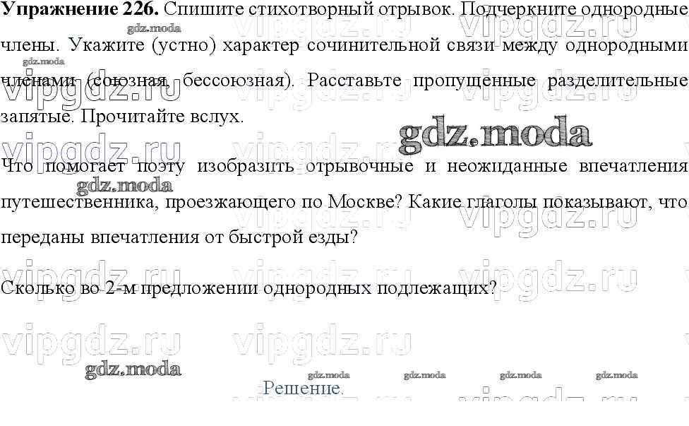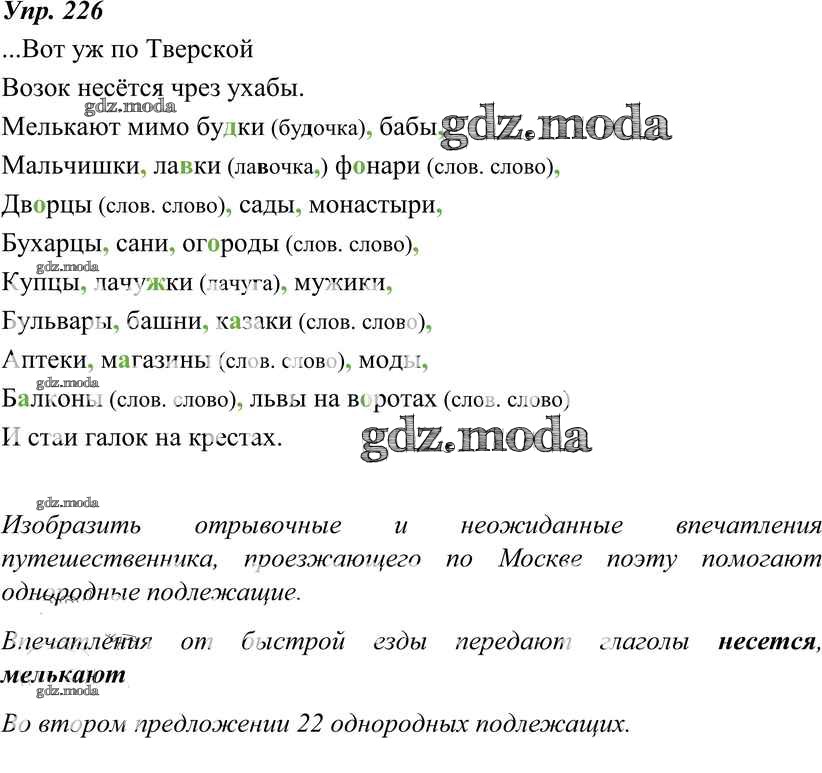 ОТВЕТ на задание № 226 Учебник по Русскому языку 8 класс Тростенцова