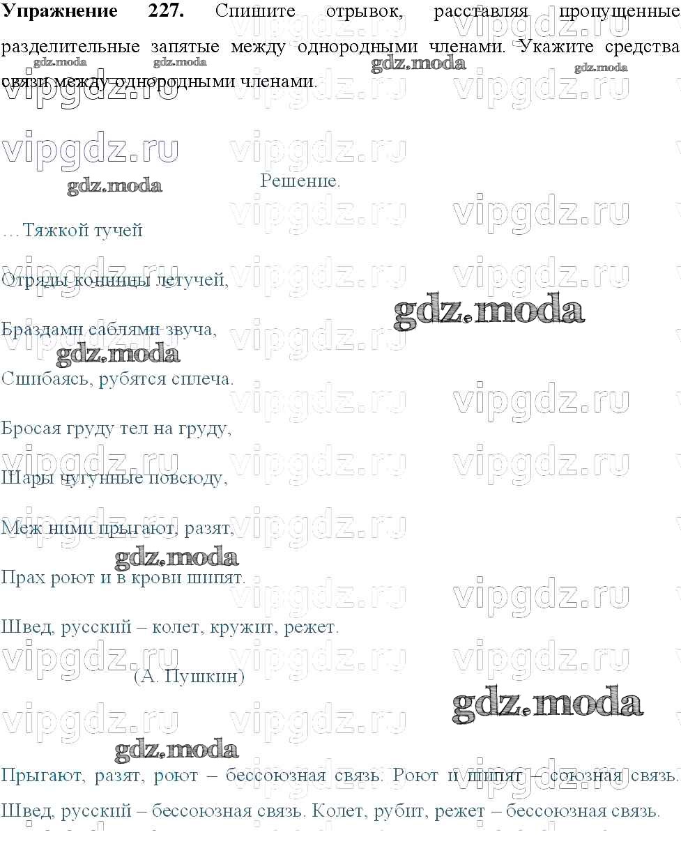 ОТВЕТ на задание № 227 Учебник по Русскому языку 8 класс Тростенцова