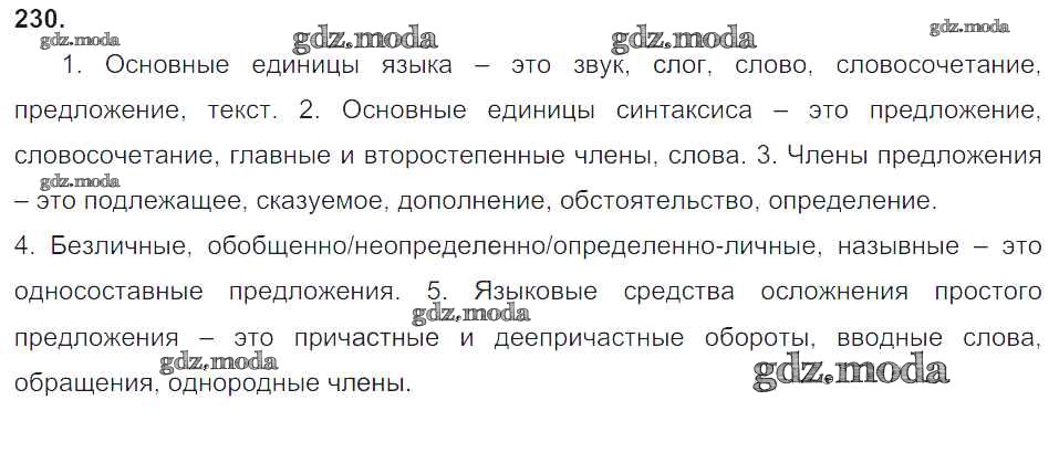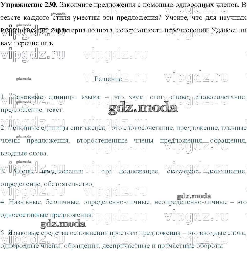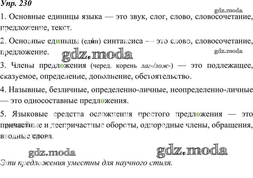 ОТВЕТ на задание № 230 Учебник по Русскому языку 8 класс Тростенцова