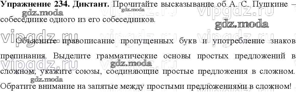 ОТВЕТ на задание № 234 Учебник по Русскому языку 8 класс Тростенцова