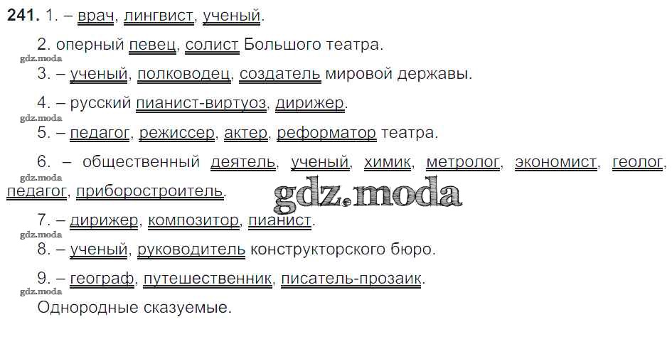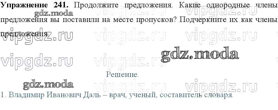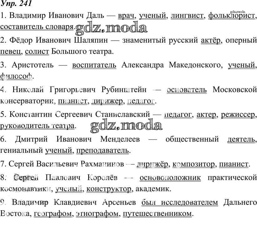 ОТВЕТ на задание № 241 Учебник по Русскому языку 8 класс Тростенцова