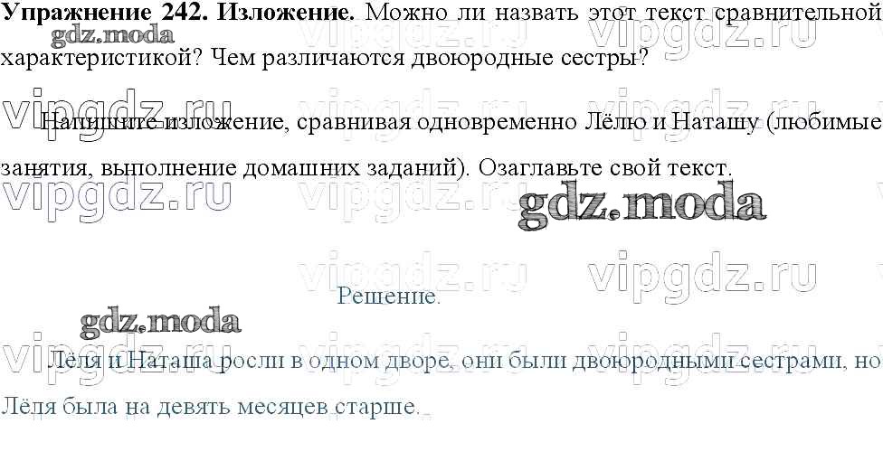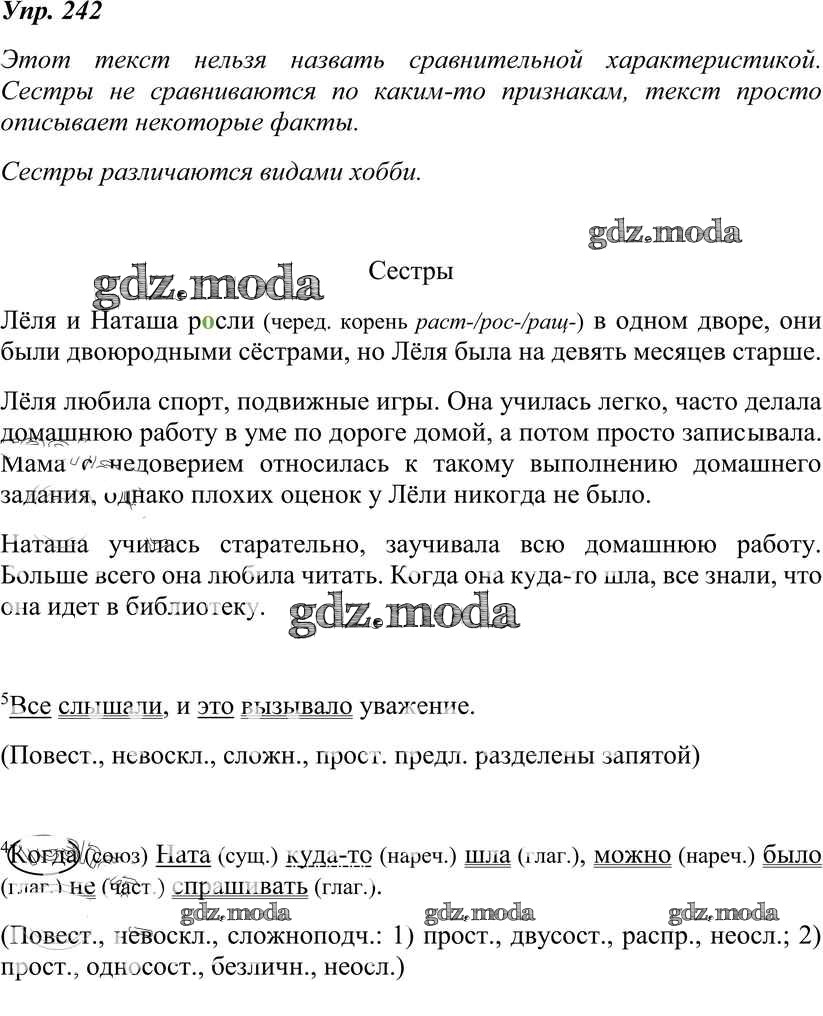 ОТВЕТ на задание № 242 Учебник по Русскому языку 8 класс Тростенцова