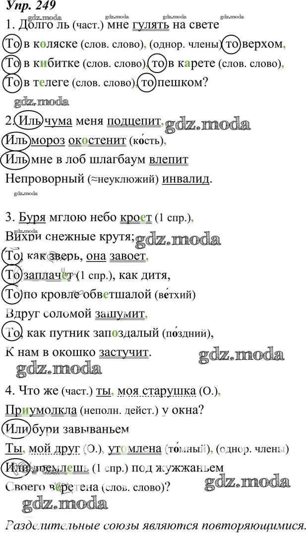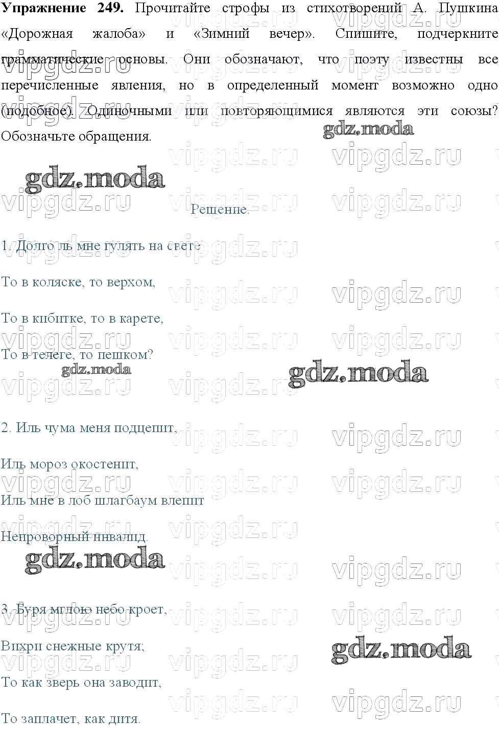 ОТВЕТ на задание № 249 Учебник по Русскому языку 8 класс Тростенцова