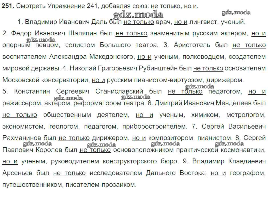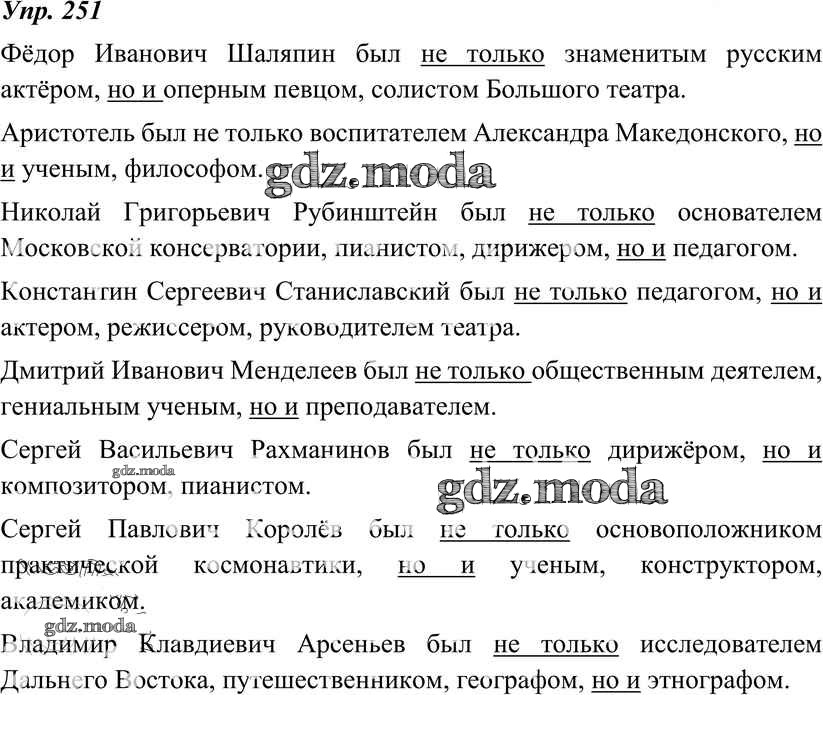 ОТВЕТ на задание № 251 Учебник по Русскому языку 8 класс Тростенцова