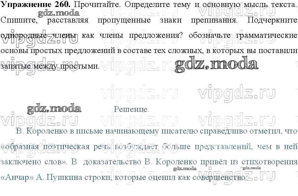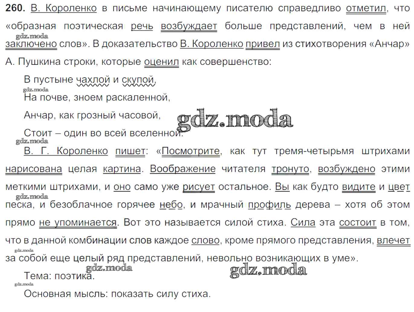 ОТВЕТ на задание № 260 Учебник по Русскому языку 8 класс Тростенцова