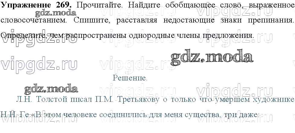 ОТВЕТ на задание № 269 Учебник по Русскому языку 8 класс Тростенцова